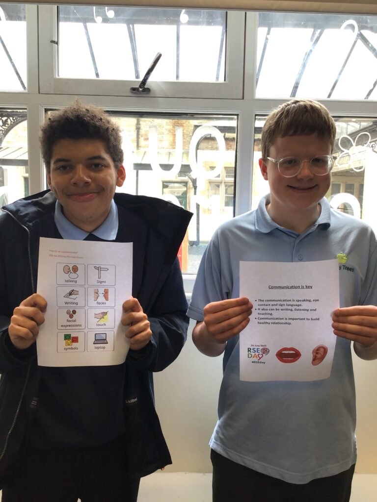Other classes began the day by learning about RSE day in assembly. Pupils and staff talked about the fact that this day is to help people talk openly about relationships. They then learned that this year’s theme is communication. They watched staff show different ways to communicate to prompt them to think about body language, gestures, signing, written communication and visual language. The young people talked about different types of relationships they might have, including friends, family and professional relationships. They then further explored romantic and online relationships. This then lead onto conversations about technology and how things like phones, iPads and laptops can be used for communication, as well as social media. Pupils then discussed that social media can be deceiving and that they should not believe everything they see. They finished up the discussion by talking about how they can be inclusive using visuals before emphasising the importance of consent, what it is and that it is ok to change your mind.