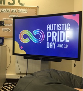 Other pupils watched a video explaining what Autistic Pride is and why it’s important. They were asked questions about what they had learnt. They engaged well. Pupils then went on to look at famous people that are autistic and that it shouldn’t stop them from having a dream and working towards it. All the young people were shocked about the famous people that had autism. This made all the young people discuss what the famous people did for a living and how their diagnosis had not stopped them from succeeding.