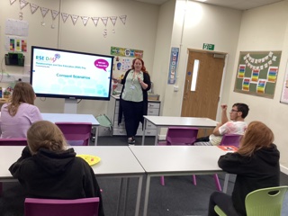 The young people accessed learning about RSE day in assembly. They talked about the fact that this day is to help people talk openly about relationships. They then learned that this year’s theme is communication. They watched staff show different ways to communicate to prompt them to think about body language, gestures, signing, written communication and visual language. The young people talked about different types of relationships they might have. They suggested friends, family and professional relationships. They then further explored romantic and online relationships. This then lead onto conversations about technology and how things like phones, iPads and laptops can be used for communication, as well as social media. They also discussed that social media can be deceiving and that they should not believe everything they see. They finished up the discussion by talking about how they can be inclusive using visuals before emphasising the importance of consent, what it is and that it is ok to change your mind. The young people then watched staff demonstrate the importance of communication. Firstly staff members were tasked with lining up in age order without talking to each other, showing how communication can occur without talking but is much harder. They then lined up in birthday month order but this time they could talk. The young people recognised that this was much more effective. They then took it in turns to come to the front and read a ‘text message’ in different tones depending on the different emotions they picked. This showed them that written communication can be perceived differently to verbal communication.